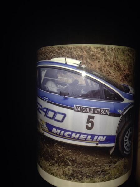 Color image taken by myself of Malcolm Wilson/John Millington in the Fiesta rs2400 on the 2013 Malcolm Wilson Rally . Coulor printed on a 11oz mug using a Dye Sublimation meaning that the mugs are dishwasher safe.